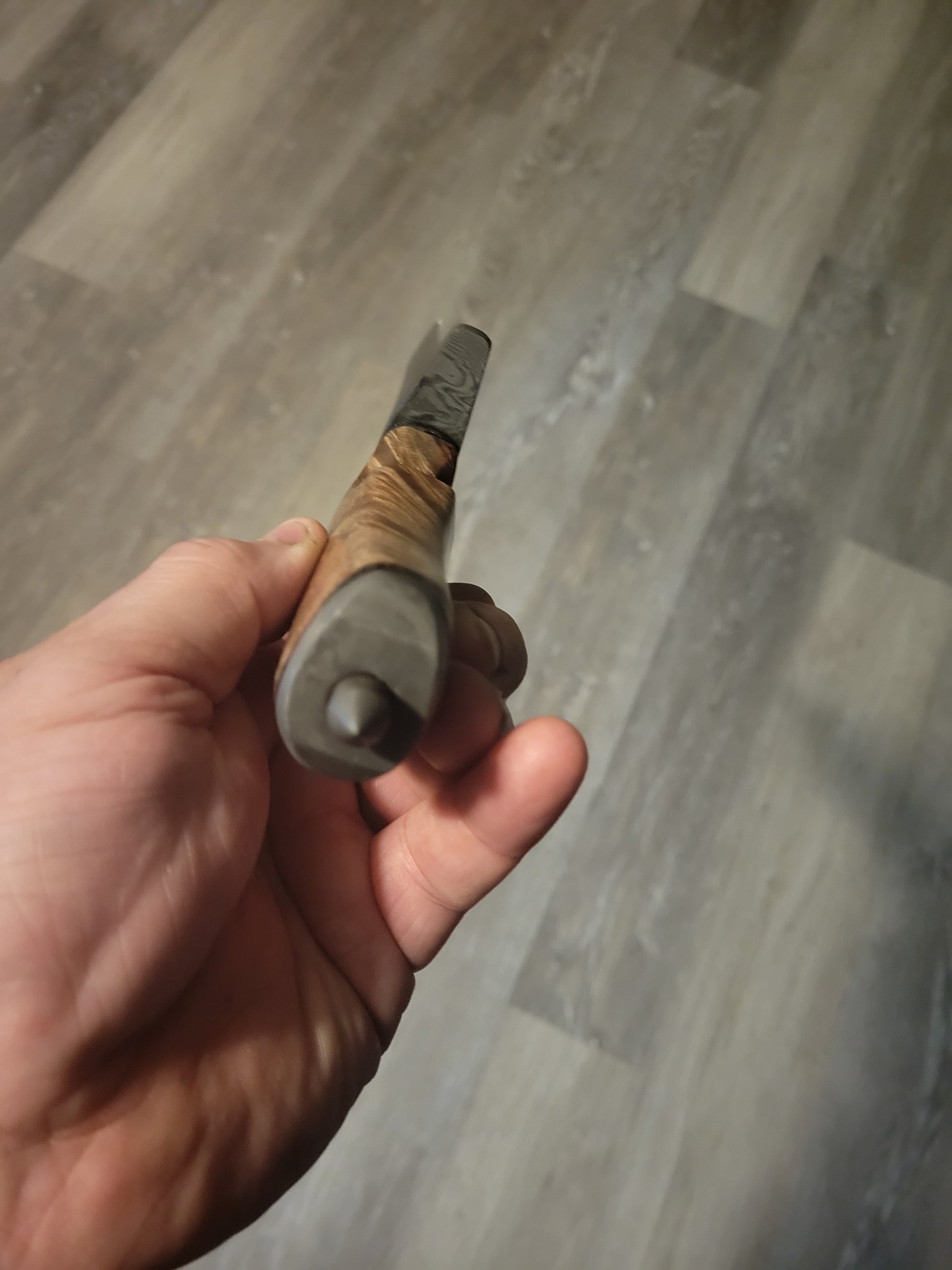 Hand forged 9" hidden tang bear hunter with 200 layer 1095 and 15n20 damascus with a 1094 core and stabilized maple burl handle with custom sheath made to order 6-8 weeks to be shipped.
