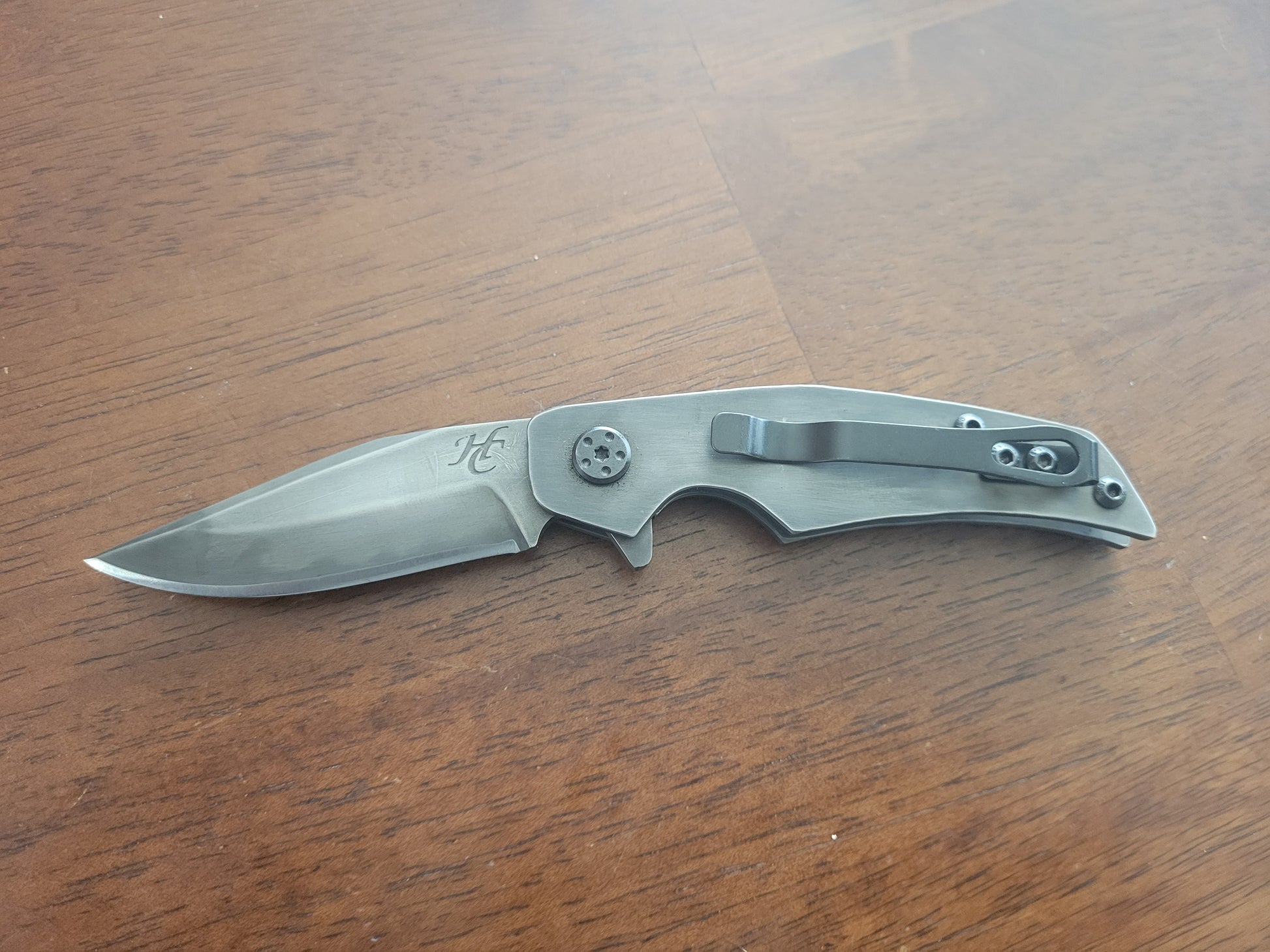 This is a hand forged frame lock folder with a belt clip. This folder has a 1084 frame and 1084 blade with hamon. All knives are made to order 4-6 weeks build time email if you would like to make any changes with blade ore handle material.