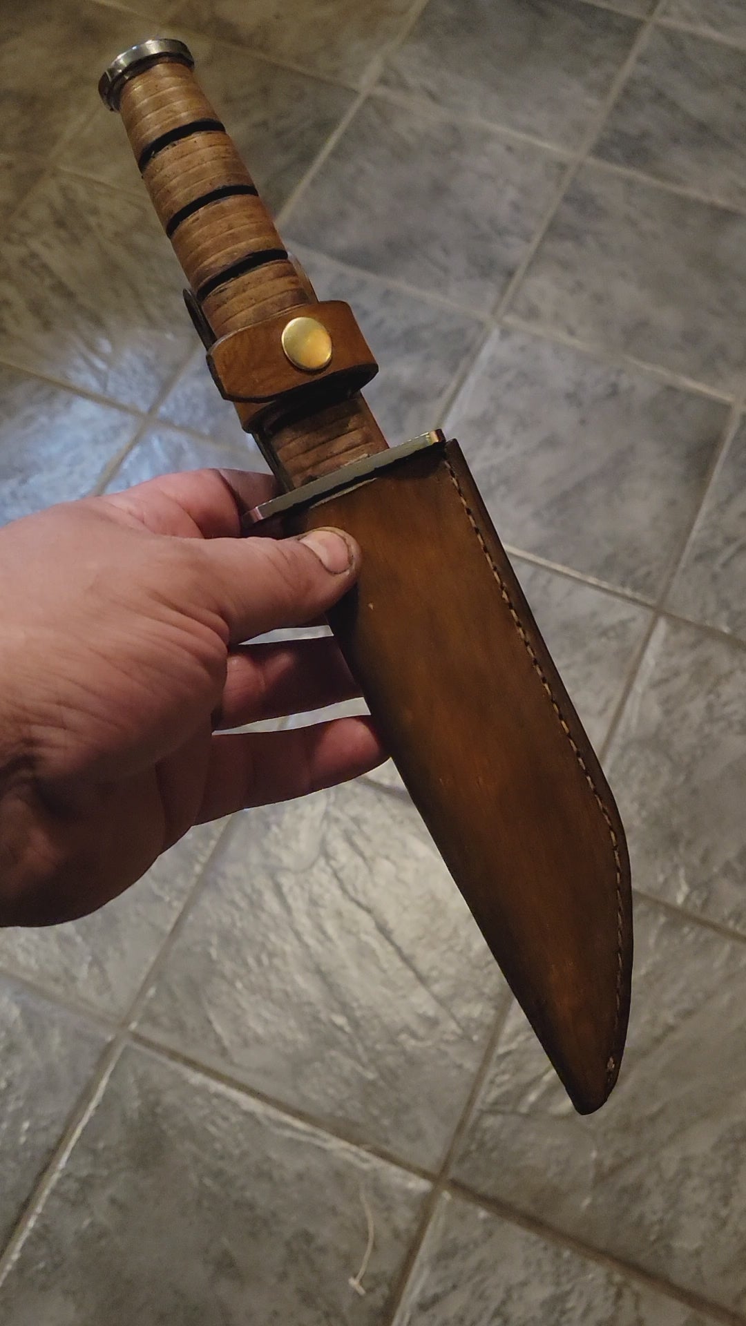 Ferrier rasp bear hunter with leather stacked handle with custom sheath made to order 6-8 weeks to be shipped.